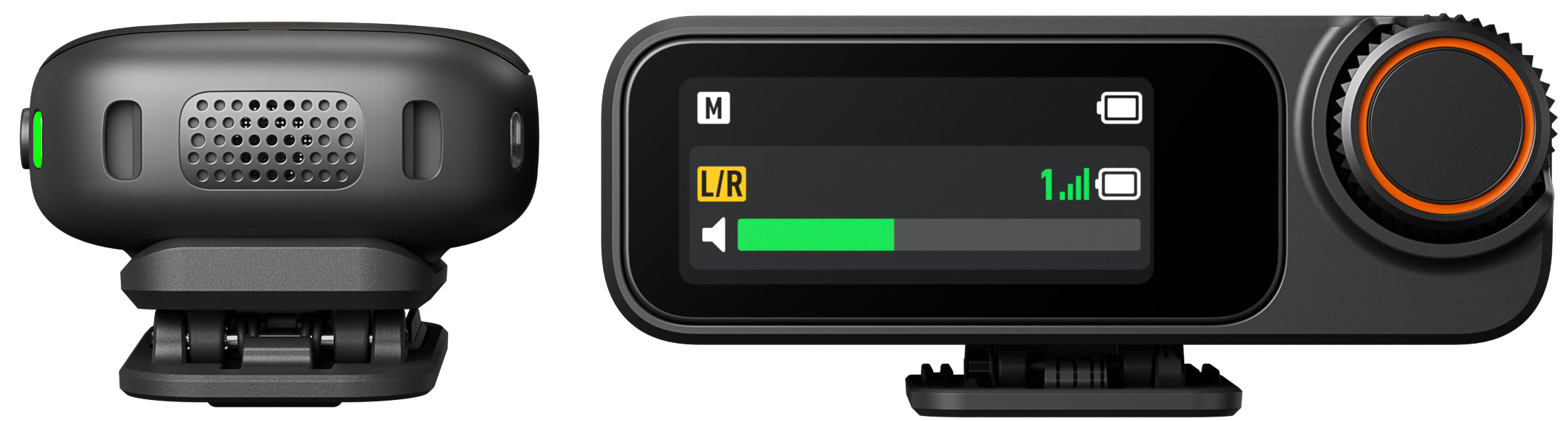 Petit, léger, polyvalent — L'émetteur compact et discret accepte fixation magnétique ou clip. Le clip rotatif et amovible ajuste l'angle pour une prise de son optimale. L'étui de chargement accueille deux émetteurs et un récepteur ; les émetteurs se rangent avec pare-brise et clips montés. Le couvercle réserve un espace pour aimants et câble audio verrouillable[1] afin de garder un kit prêt à l'emploi.