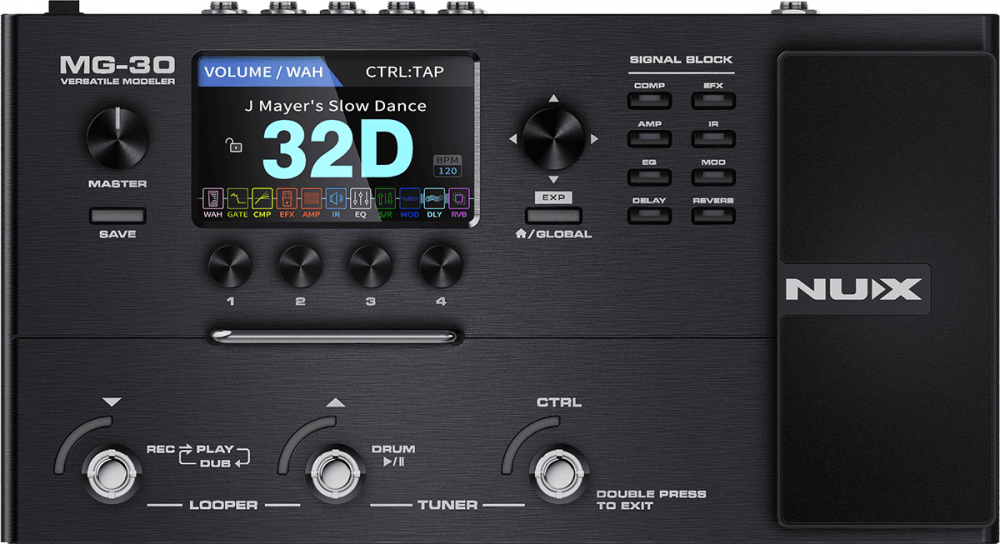 Le MG30 propose une chaîne de signal entièrement modulable de 11 blocs indépendants, avec gestion du routage parallèle. L'assignation des footswitchs permet l'activation/désactivation de blocs d'effet dans un même preset. Le logiciel gratuit Nux QuickTone™ Edit Software permet d'affiner les paramètres en temps réel, de télécharger des patchs, charger des IR tierces et configurer le routage audio USB. Véritable interface audio USB (Port micro USB inclus), le MG30 permet d'enregistrer, de streamer et de re-amper vos enregistrements. Il gère aussi le MIDI et offre un traitement du signal 48 kHz, 32 bit, avec une plage dynamique de 110 dB.
